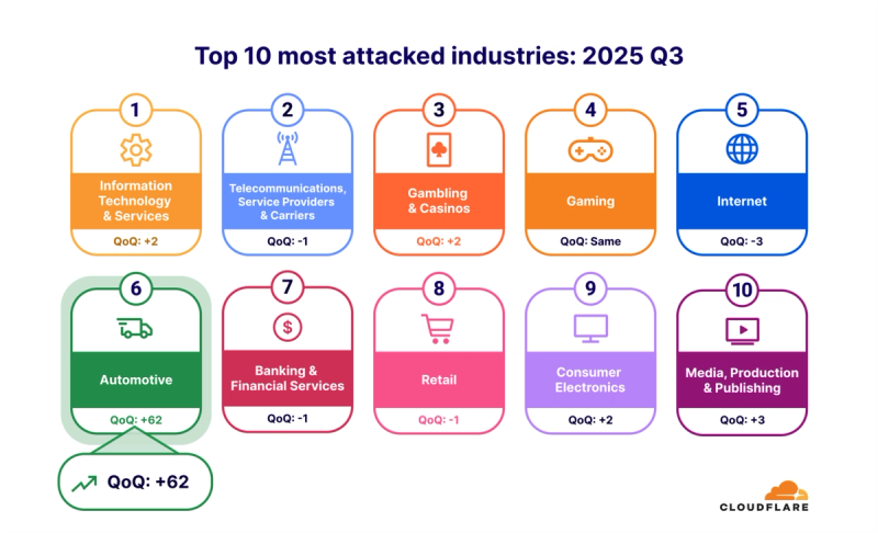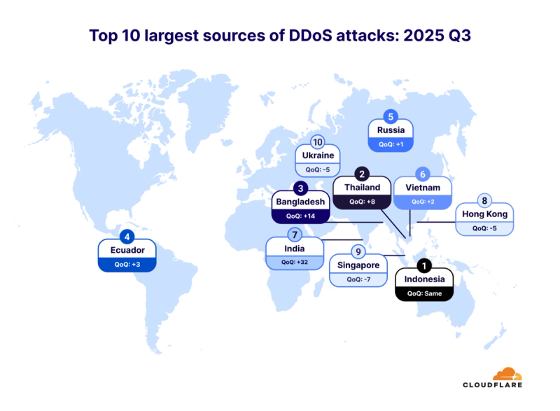 W Q3 2025 Cloudflare zablokował ponad 6 milionów ataków DDoS, co stanowi wzrost o 49% w porównaniu do poprzedniego kwartału i aż 55% rok do roku. Średnio firma odpierała 4500 ataków na godzinę.